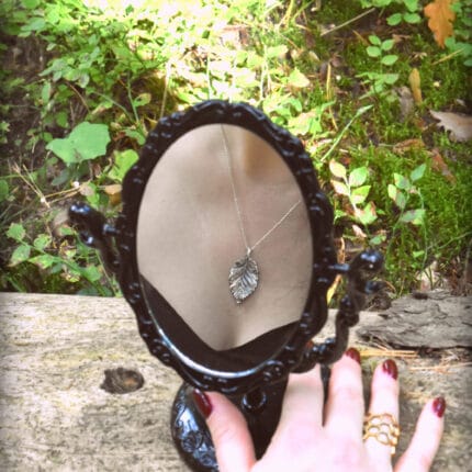 ⚜︎ Pakabukas sukurtas iš tikros samanos bei kvarco mineralo. Tai yra tikras augalas, elektrolizės būdu apaugintas variu, tada kelių mikronų gryno aukso sluoksniu.⚜︎ Papuošalas parduodamas kartu su sidabrine auksuota grandinėle, sveria 9,2 g, sukurta iš 925 prabos sidabro.⚜ Prabuota Lietuvos prabavimo rūmuose.⚜ Papuošalas parduodamas supakuotas dovanų pakuotėje.
