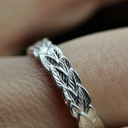 ⚜ Autorinis rankų darbo žiedas.⚜ Žiedas inkrustuotas mažu šampaniniu deimantu. Deimanto autentiškumas patvirtintas prabavimo rūmų etiketėje, specifikacijos parašytos paskutinėje nuotraukoje.⚜ Prabuota Latvijos prabavimo rūmuose, sidabro praba 925, sveria 1,36 g.⚜ Galima rinktis iš kelių skirtingų dydžių.⚜ Papuošalas parduodamas supakuotas medinėje rankų darbo dėžutėje.