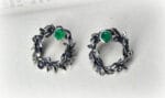 ⚜︎ Auskarai bei jų užsegimai sukurti iš 925 prabos sidabro, sidabras tamsintas.⚜ Auskarai inkrustuoti 5 mm diametro dydžio tamsiai žalios spalvos onikso akmenimis.⚜Kiekvieno auskaro lapeliai unikalūs bei skirtingi, formuoti rankomis.⚜ Prabuota Latvijos prabavimo rūmuose.⚜ Auskarų svoris 6,47 g.⚜ Papuošalas parduodamas supakuotas medinėje rankų darbo dėžutėje.