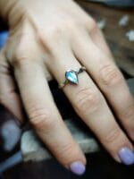 ⚜ Balto aukso žiedas su natūraliu mėnulio akmeniu.⚜ Dydis 18.⚜ Prabuota Latvijos prabavimo rūmuose, aukso praba 585.⚜ Žiedo svoris 2,48 g.⚜ Papuošalas parduodamas supakuotas dovanų dėžutėje.