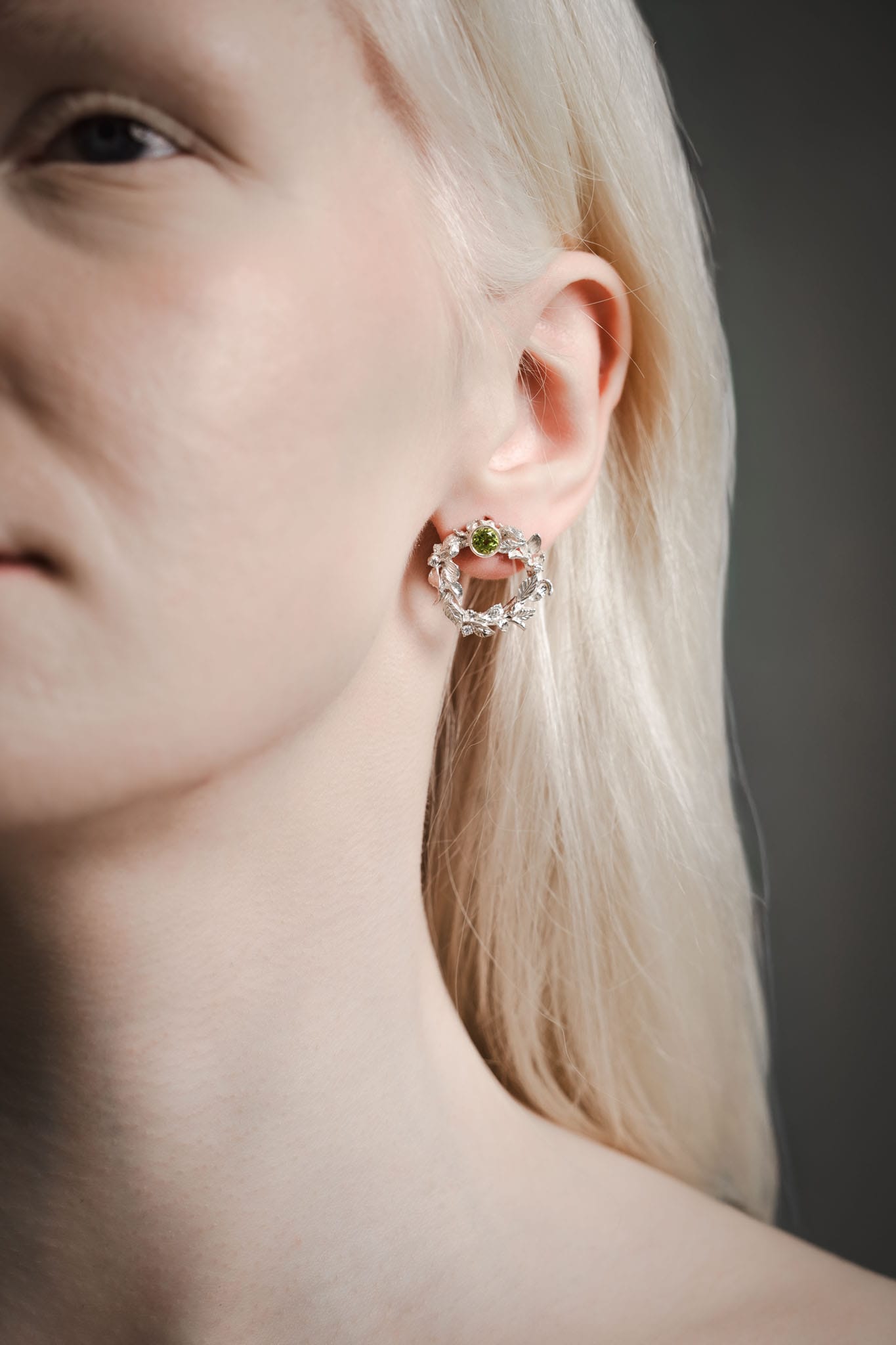 ⚜︎ Vienetiniai sidabriniai auskarai su šakelių ir lapelių pynimu, primenančiu miško vainiką – gyvybės ir atgimimo simbolį.