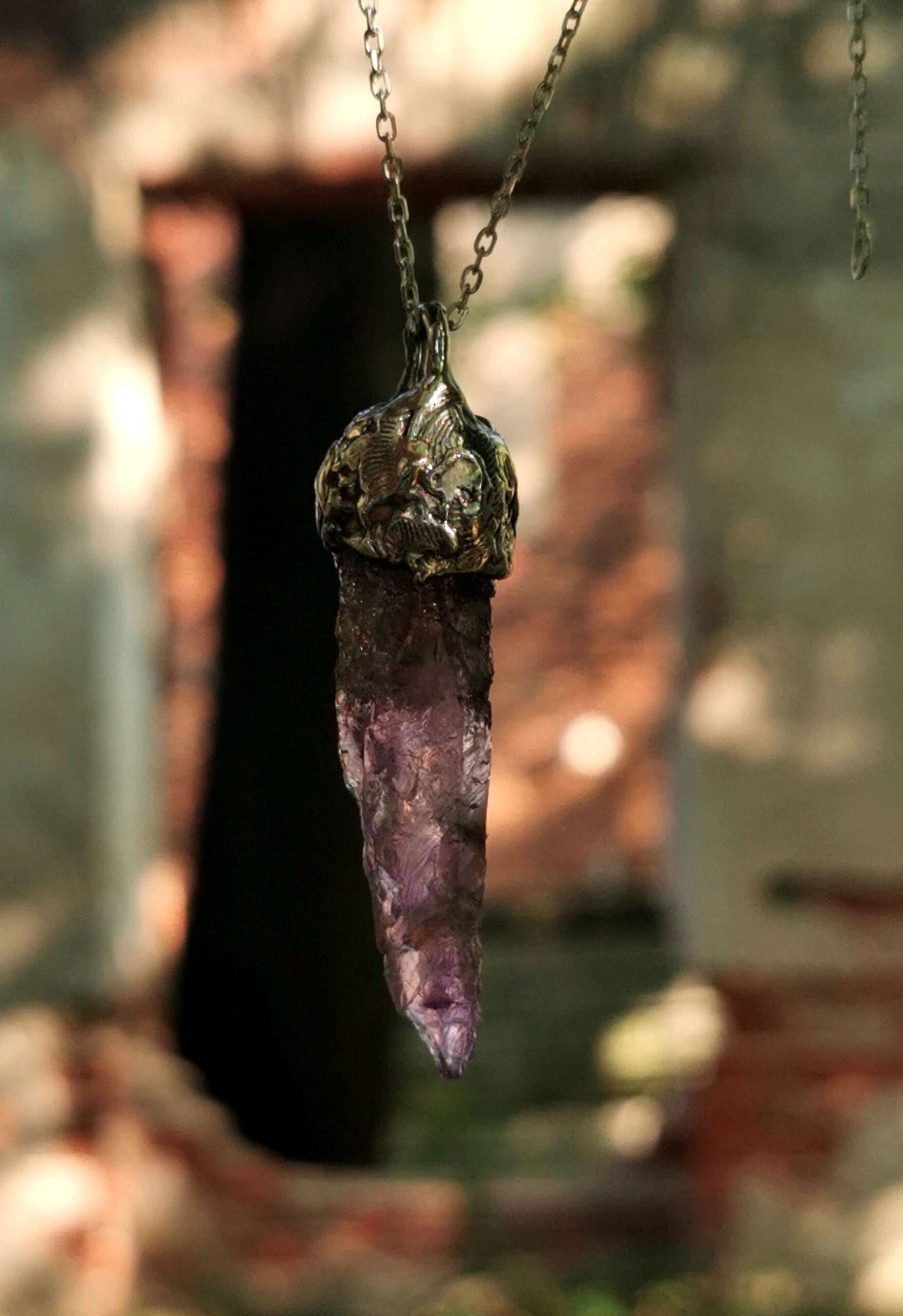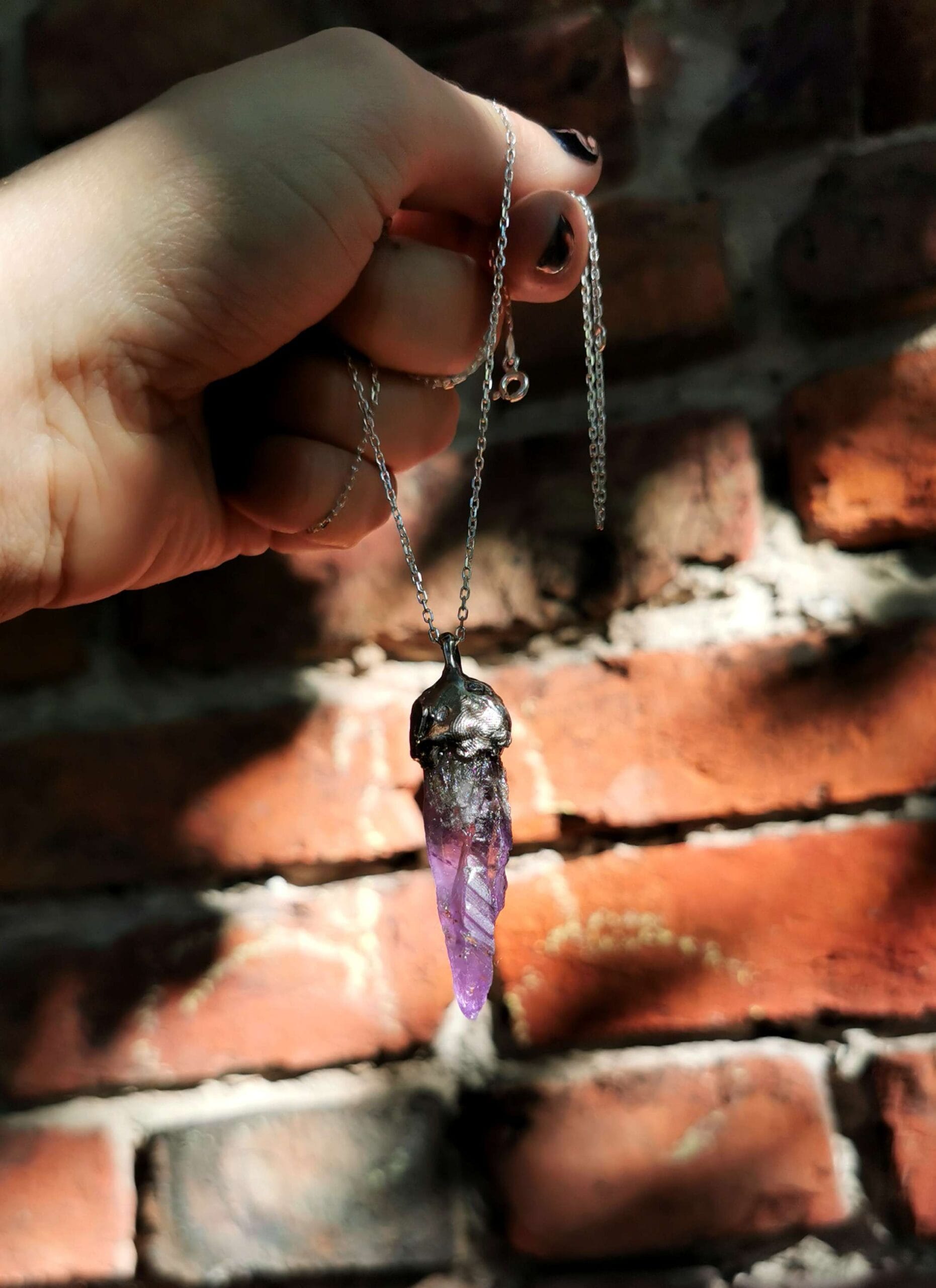 ⚜ Rankų darbo pakabukas su ametisto kristalu ⚜ Kristalo ilgis 5 cm.⚜ Pakabukui naudotas 925 prabos sidabras, sveria 22,45 g.⚜ Pakabinimo detalė- sidabrinė, papuošalas parduodamas kartu su smulkia sidabrine (925 praba) grandinėle.⚜ Prabuota Lietuvos prabavimo rūmuose.⚜ Papuošalas parduodamas supakuotas dovanų pakuotėje.