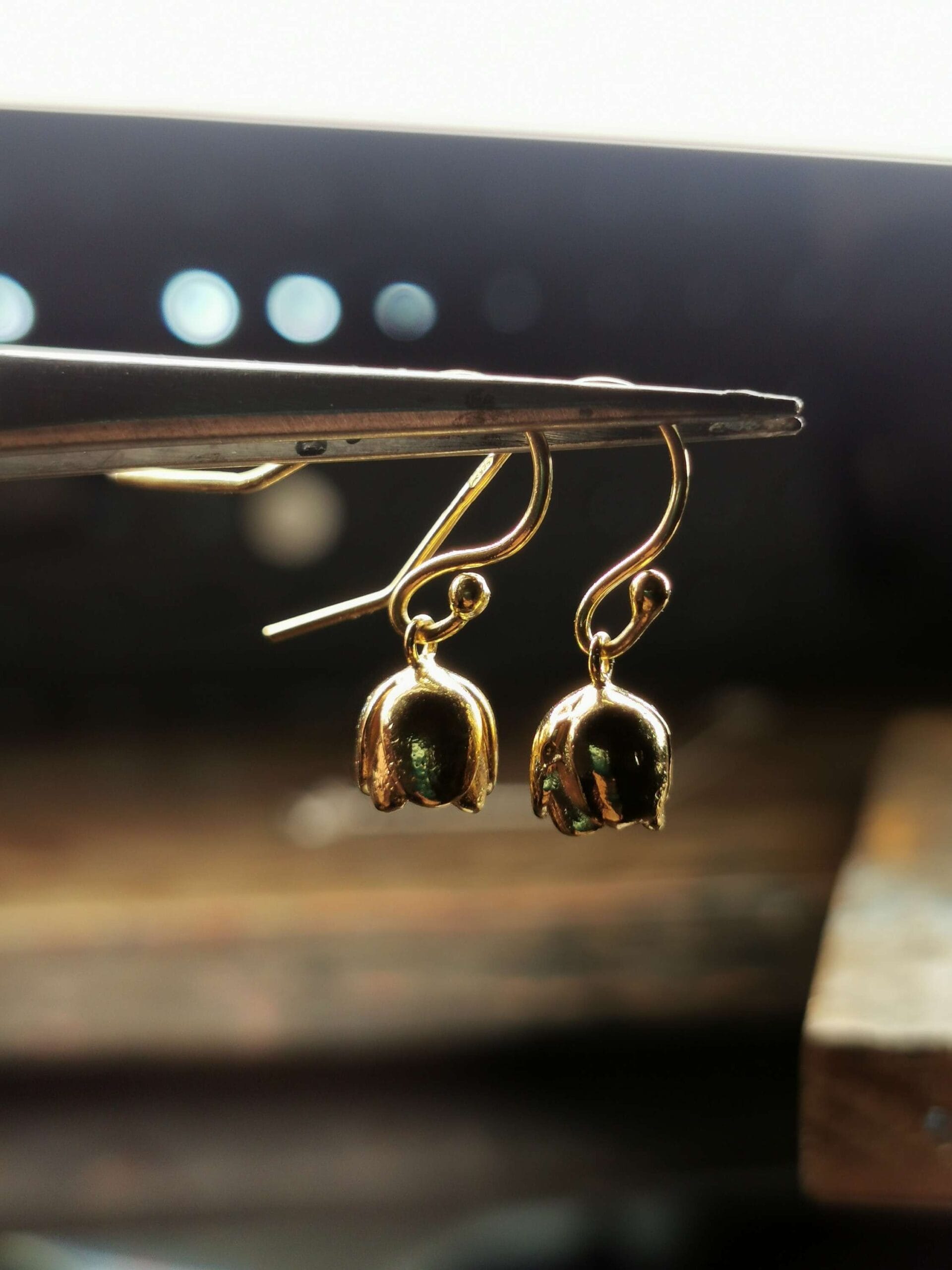 ⚜︎ Puikiai tinka kasdieniam nešiojimui, nedideli – auskaro ilgis su užsegimu 2 cm.⚜︎ Auskarai primena sumažintus tikrus tulpių žiedus.⚜︎ Auskarai ir jų užsegimai pagaminti iš 925 prabos sidabro, auskarų svoris 3,02 g. Dengti 3 mikronų storio gryno aukso sluoksniu.⚜︎ Prabuoti Lietuvos prabavimo rūmuose.⚜︎ Papuošalas parduodamas dovanų dėžutėje – puikiai tinka dovanai.