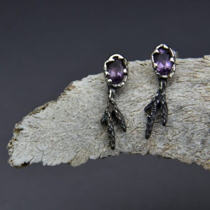 ⚜︎ Auskarai bei jų užsegimai sukurti iš 925 prabos sidabro, sidabras tamsintas.⚜ Auskarai inkrustuoti 5 mm diametro dydžio tamsiai žalios spalvos onikso akmenimis.⚜Kiekvieno auskaro lapeliai unikalūs bei skirtingi, formuoti rankomis.⚜ Prabuota Latvijos prabavimo rūmuose.⚜ Auskarų svoris 6,47 g.⚜ Papuošalas parduodamas supakuotas medinėje rankų darbo dėžutėje.