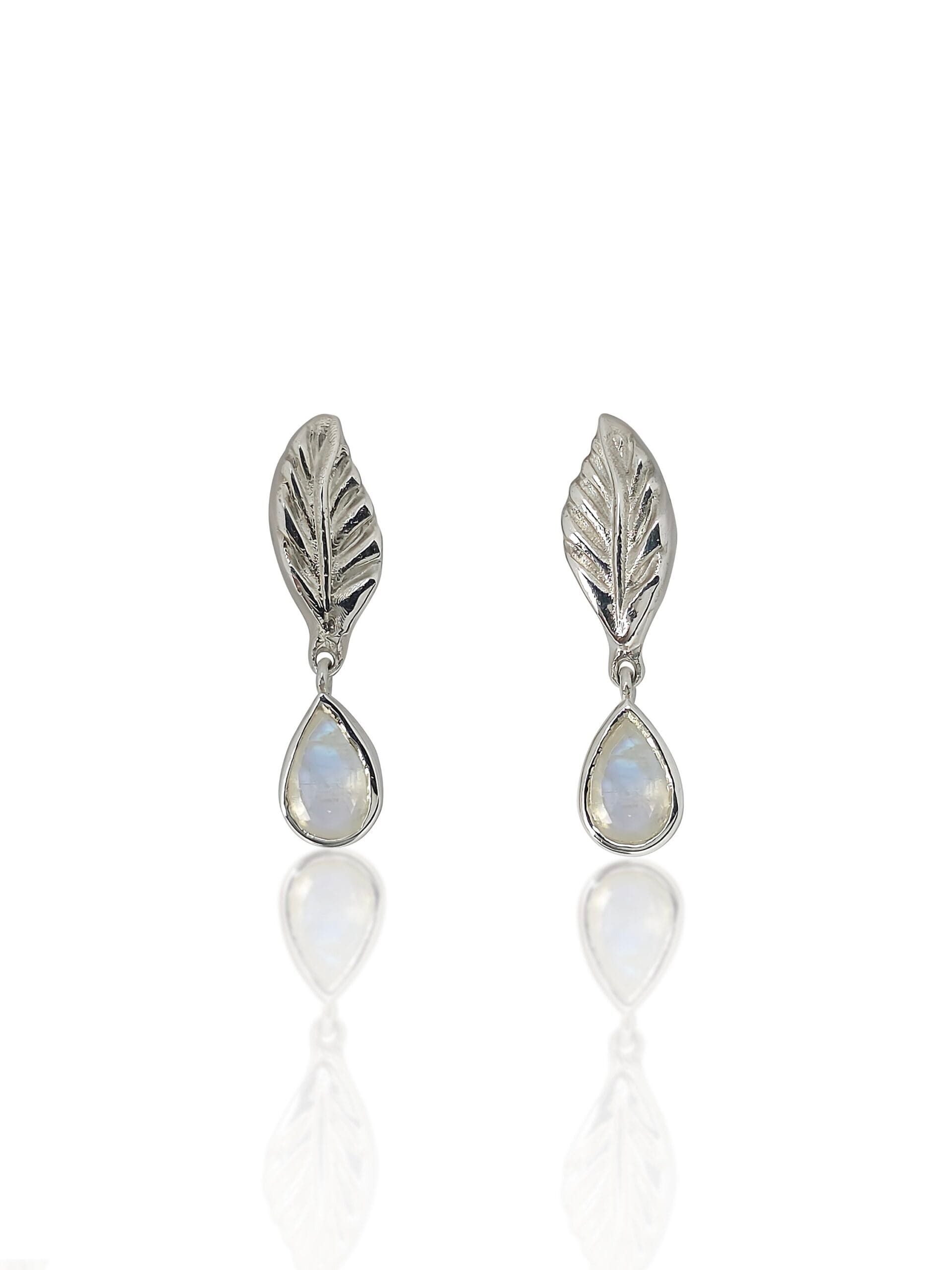 ⚜︎ Auskarus puošia natūralūs mėnulio akmenys, subtiliai žaižaruojantys šviesoje.