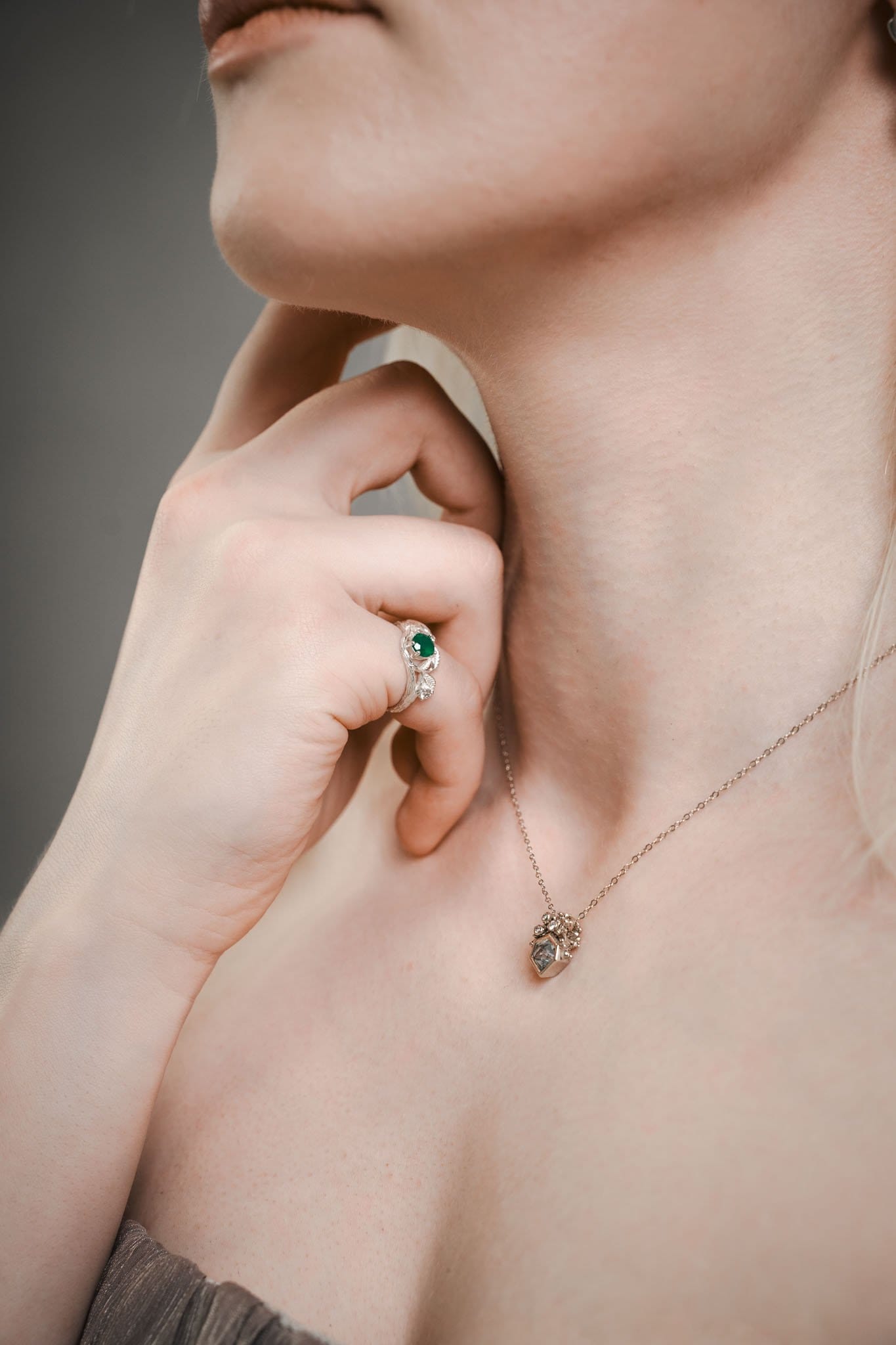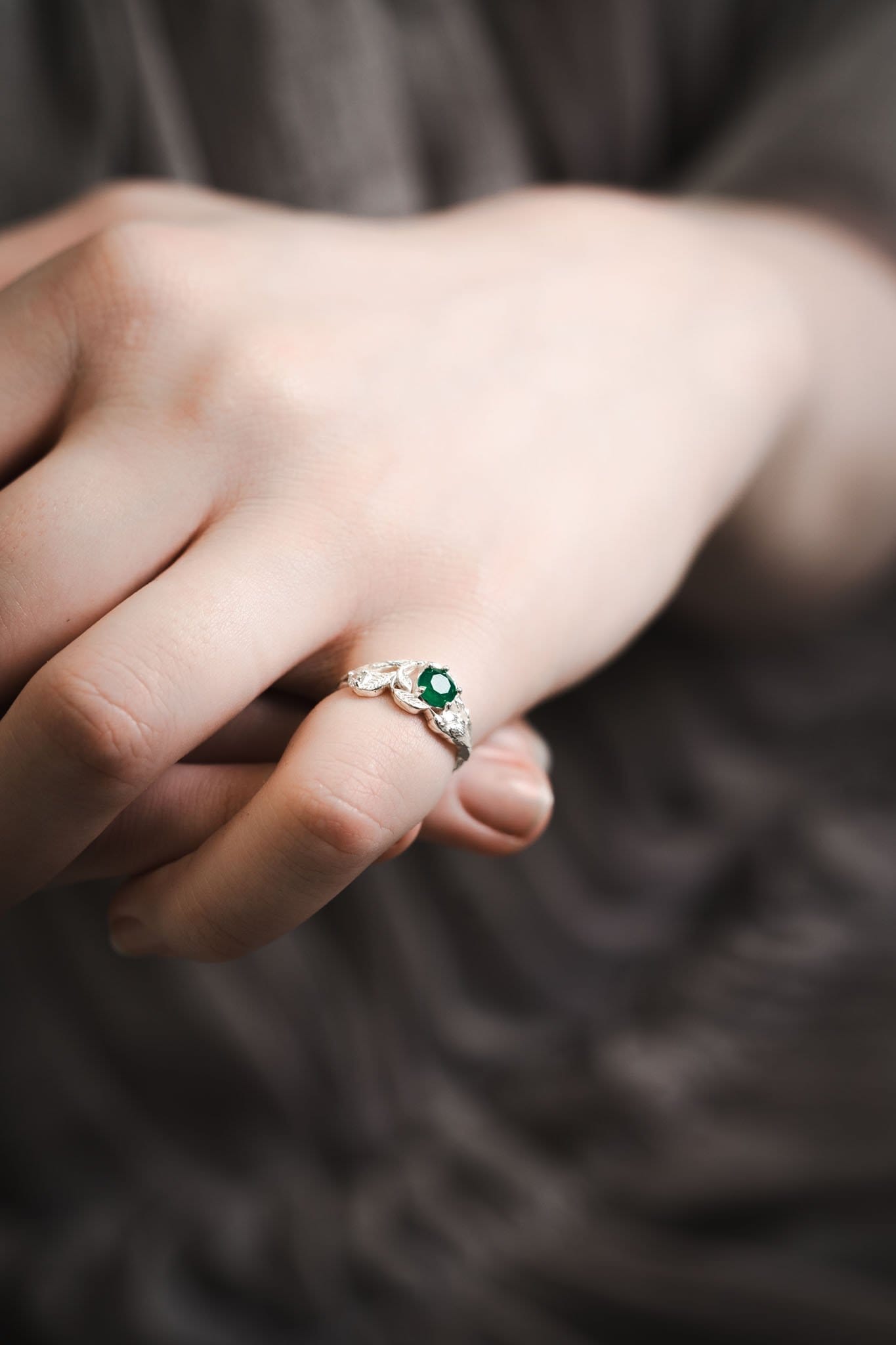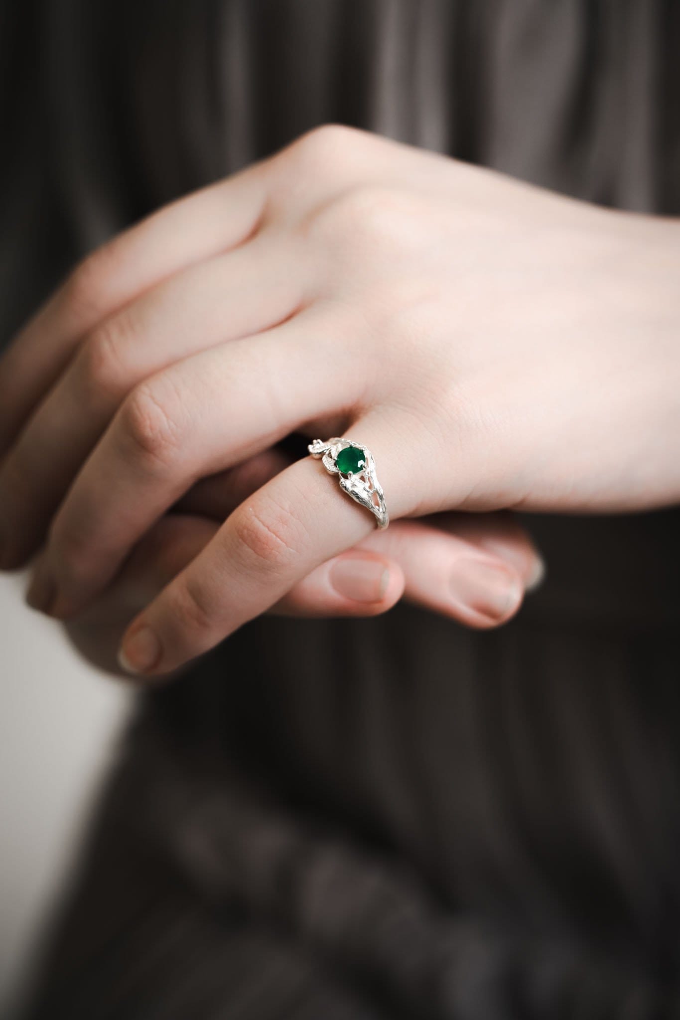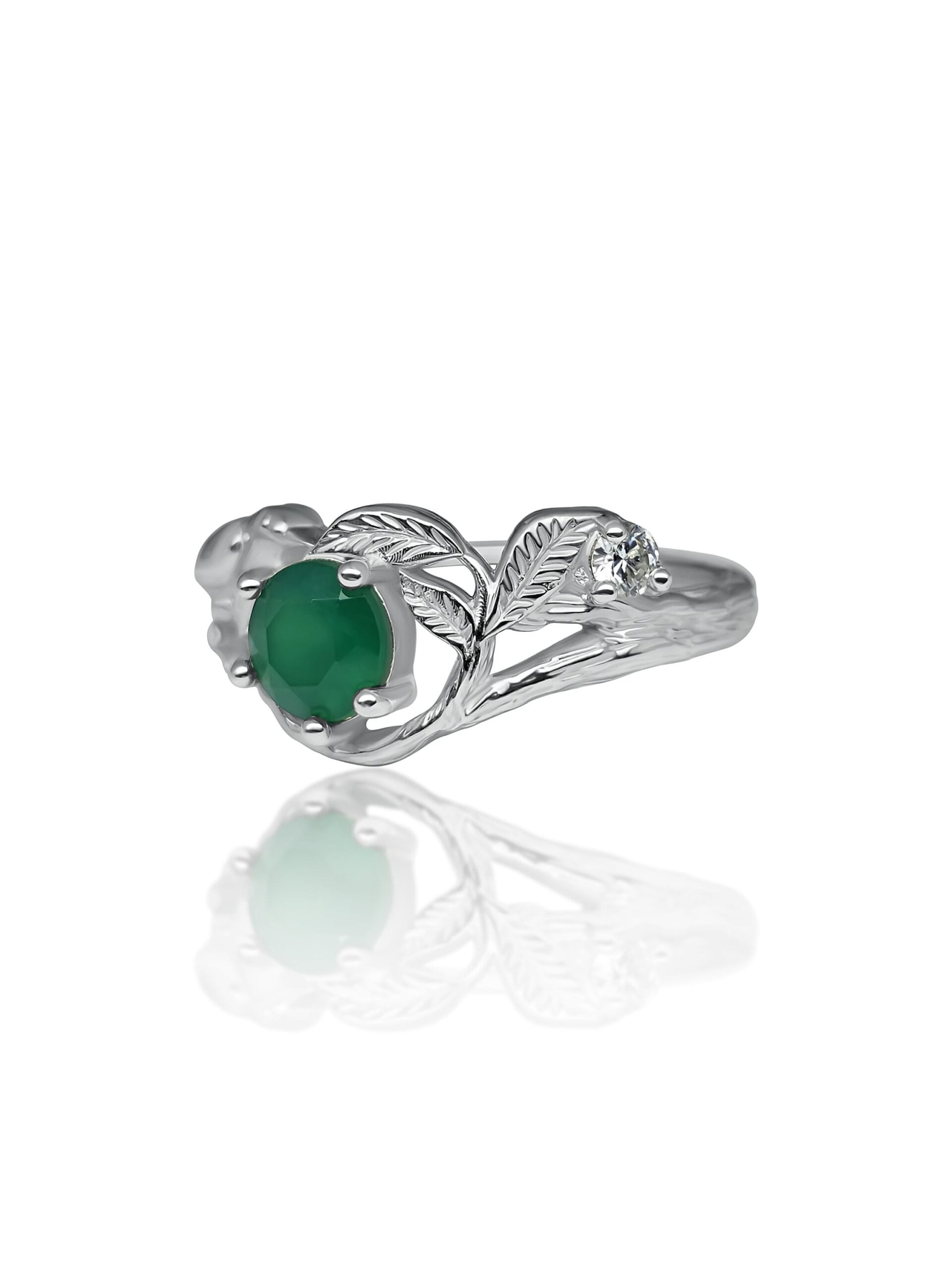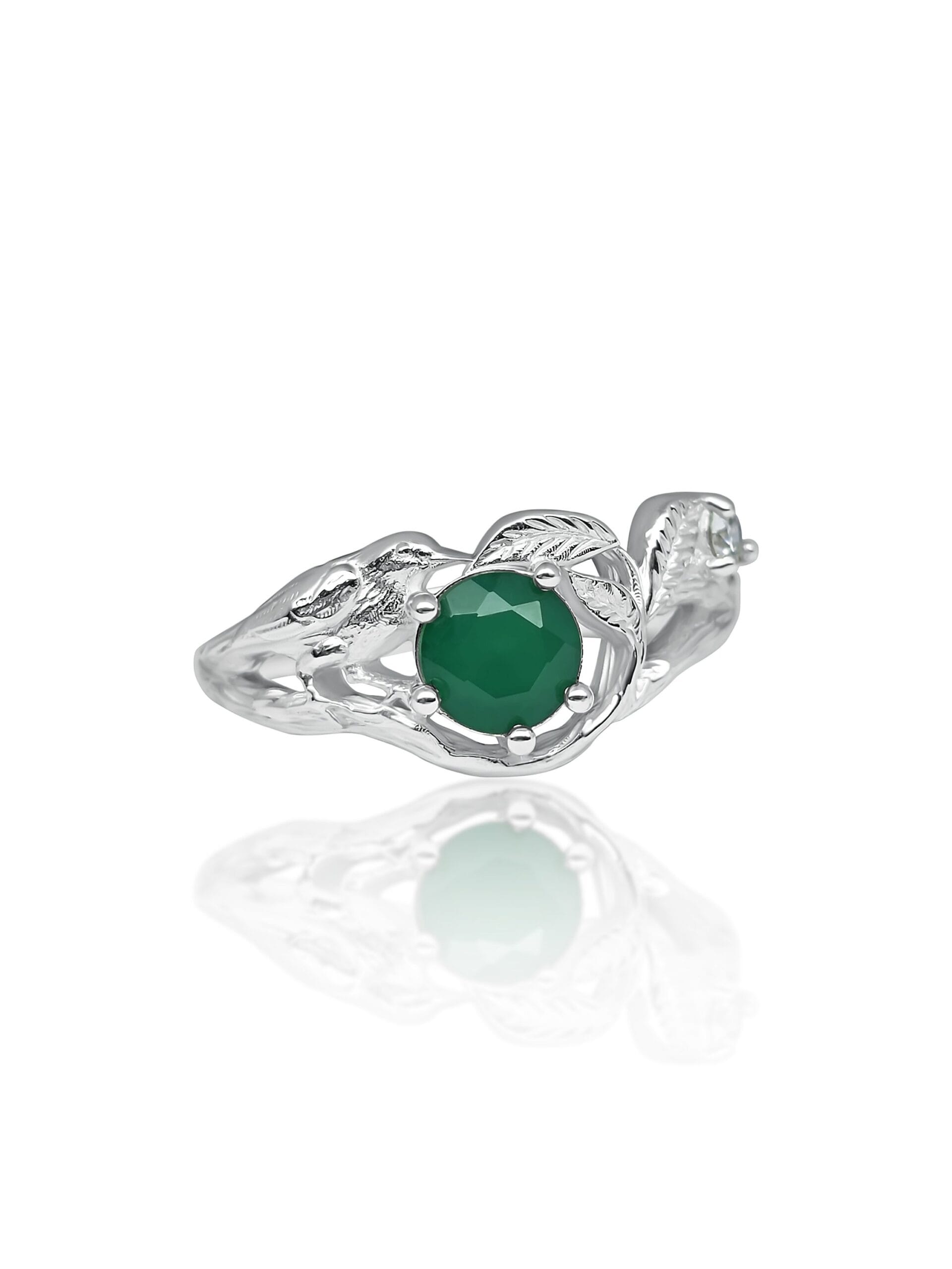 ⚜ Sidabro žiedas su žaliu onikso akmeniu ir šone įstatytu moisanitu.