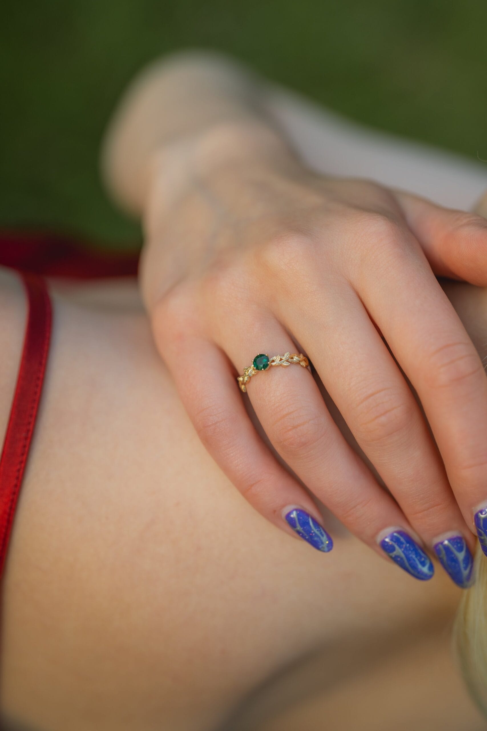 ⚜︎ Autorinis, gamtos įkvėptas dizainas su šakelių ir lapelių motyvais.