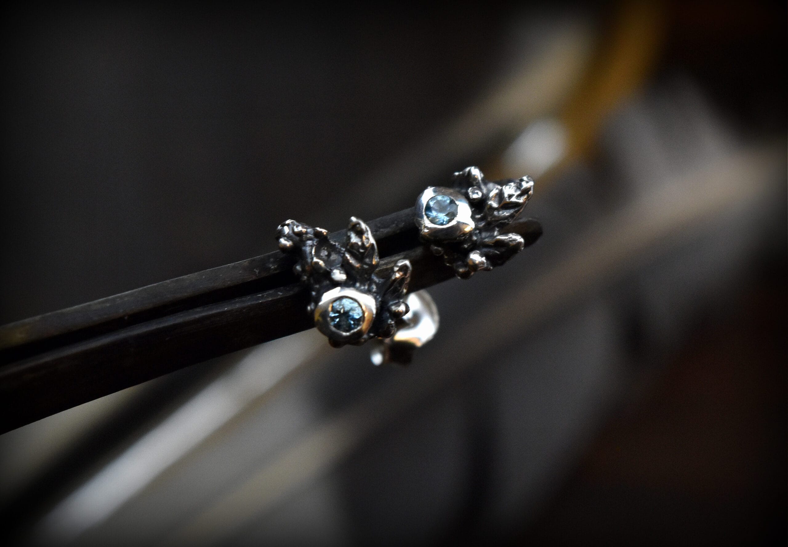 ⚜︎ Auskarai inkrustuoti topazo akmenimis.⚜︎ Tinkami nešioti kasdien, nedideli.⚜︎ Sidabras specialiai paveiktas, taip išgaunant tamsesnius sidabro atspalvius.⚜︎ Auskarai bei jų užsegimai sukurti iš 925 prabos sidabro, sveria 1,31 g.⚜ Prabuota Lietuvos prabavimo rūmuose.⚜ Papuošalas supakuotas dovanų maišelyje.