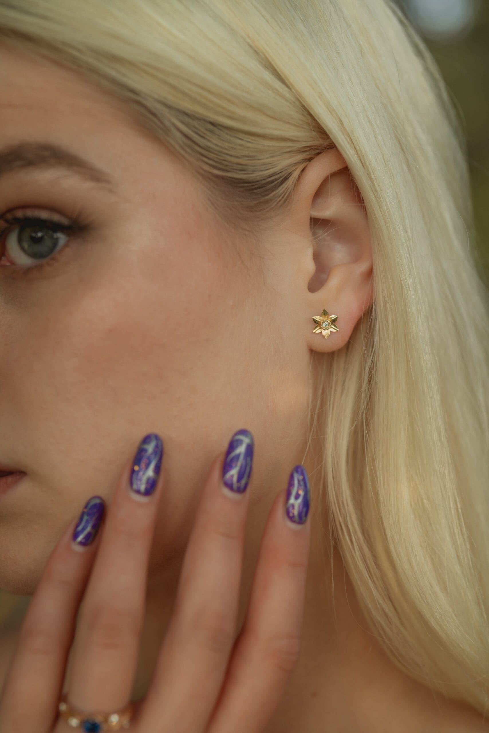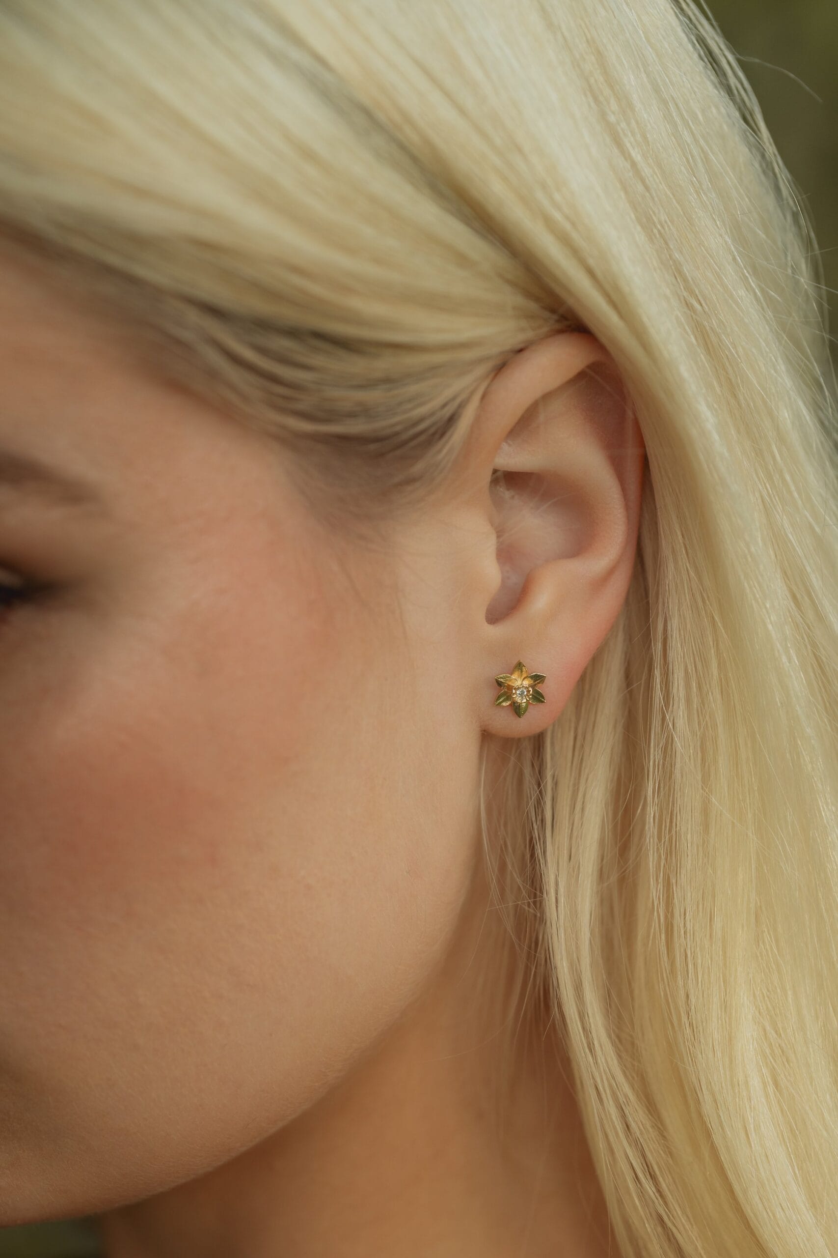 ⚜︎ Auskarai primena sumažintus tikrus narcizų žiedus.