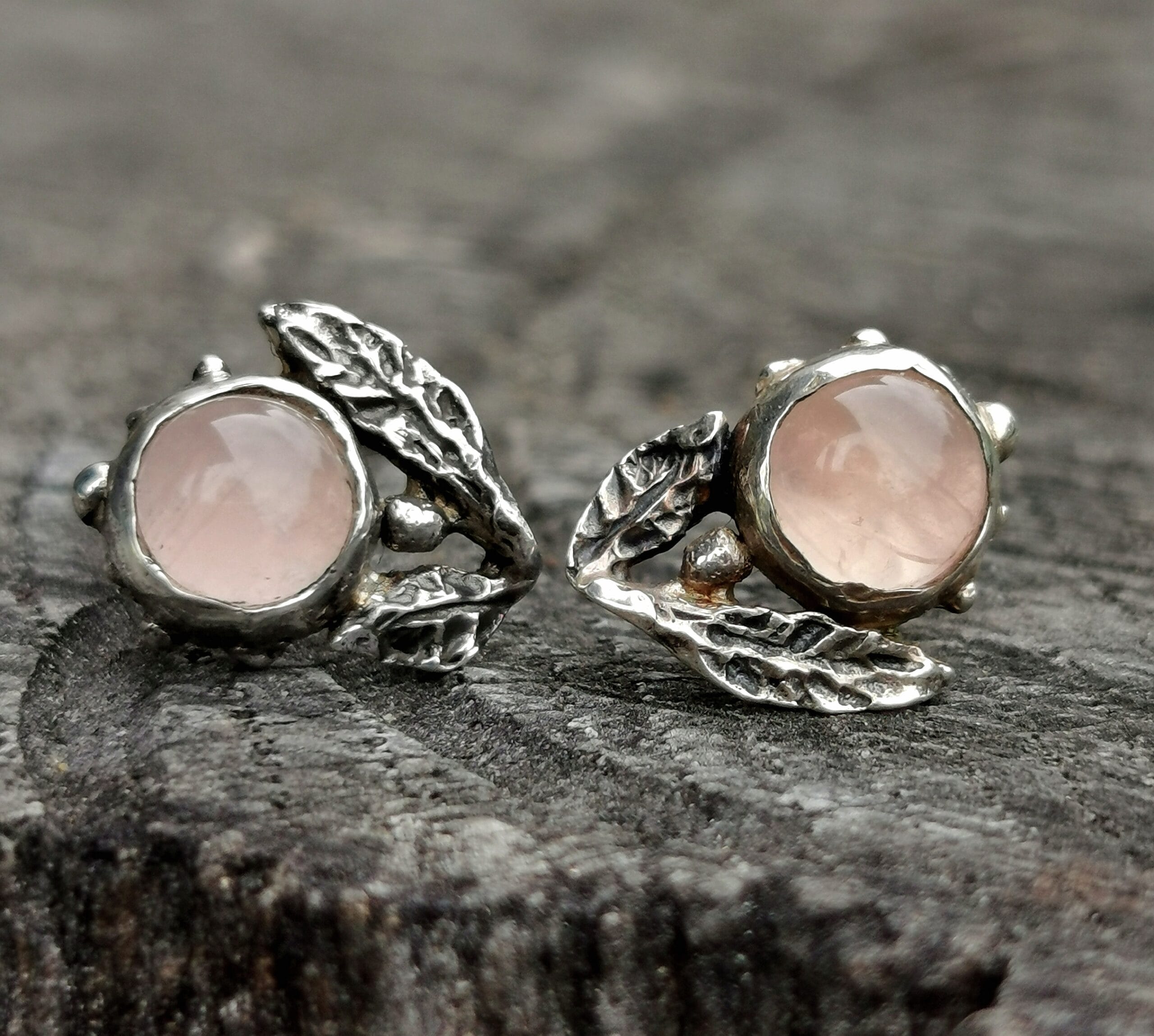 Sidabro gėlytės su rožiniu kvarcu