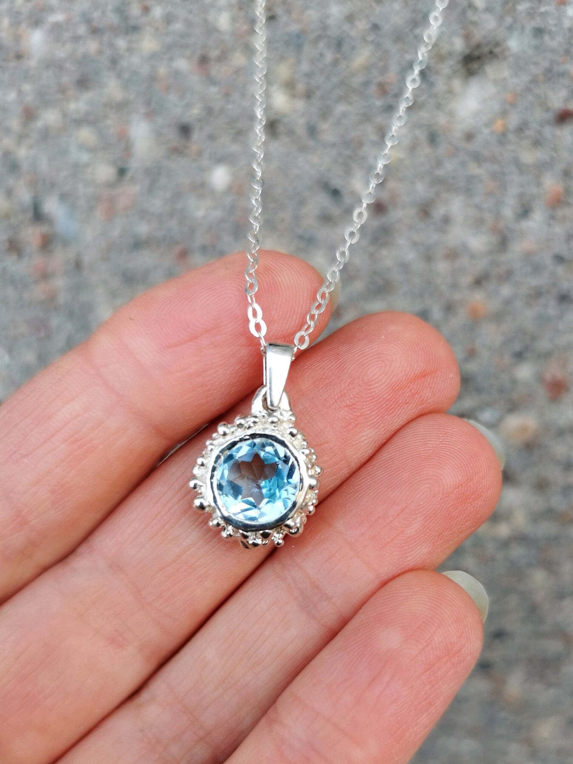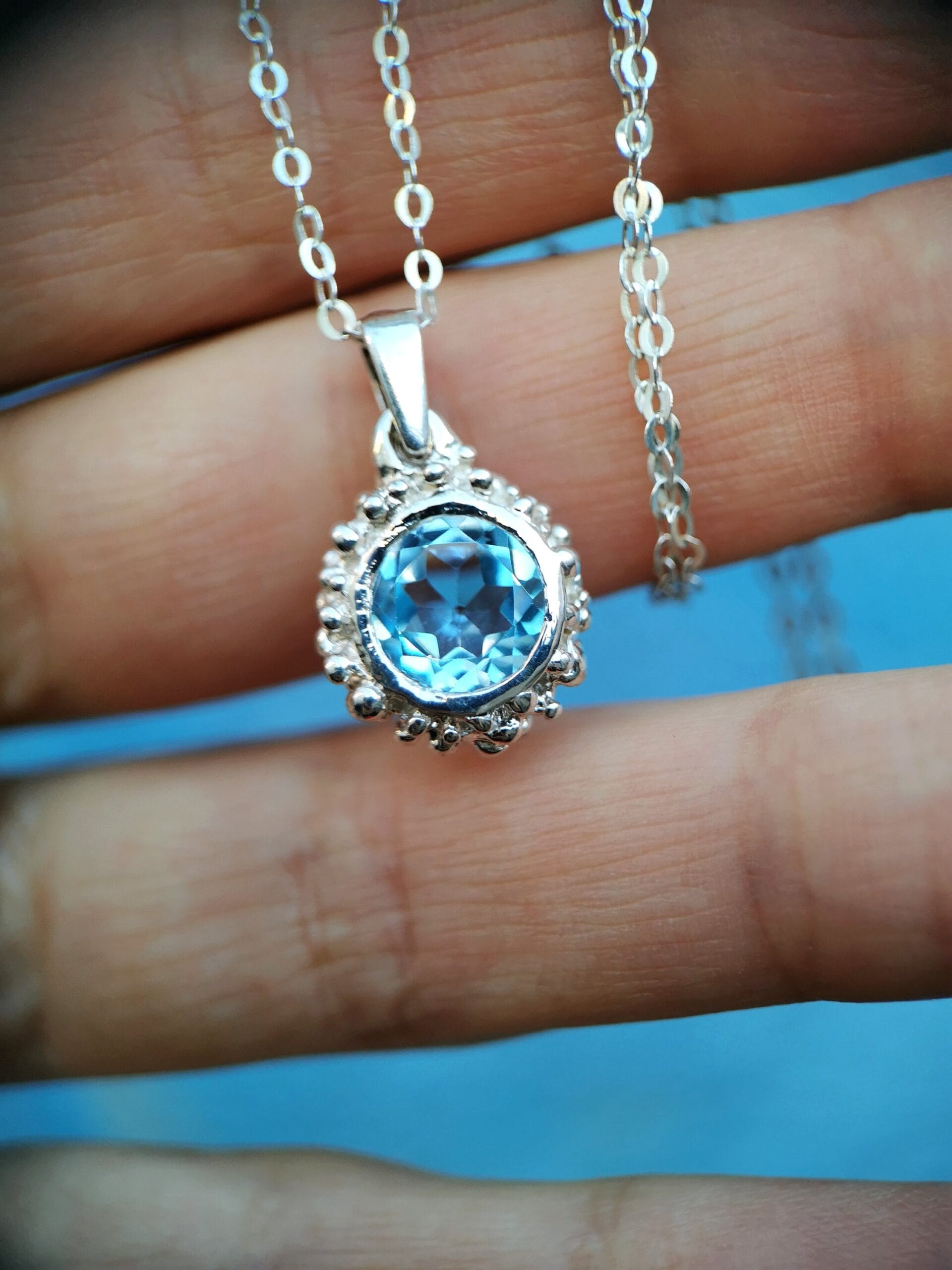 ⚜︎ Patogaus ir puošnaus dizaino pakabukas su žydros spalvos topazo akmeniu.