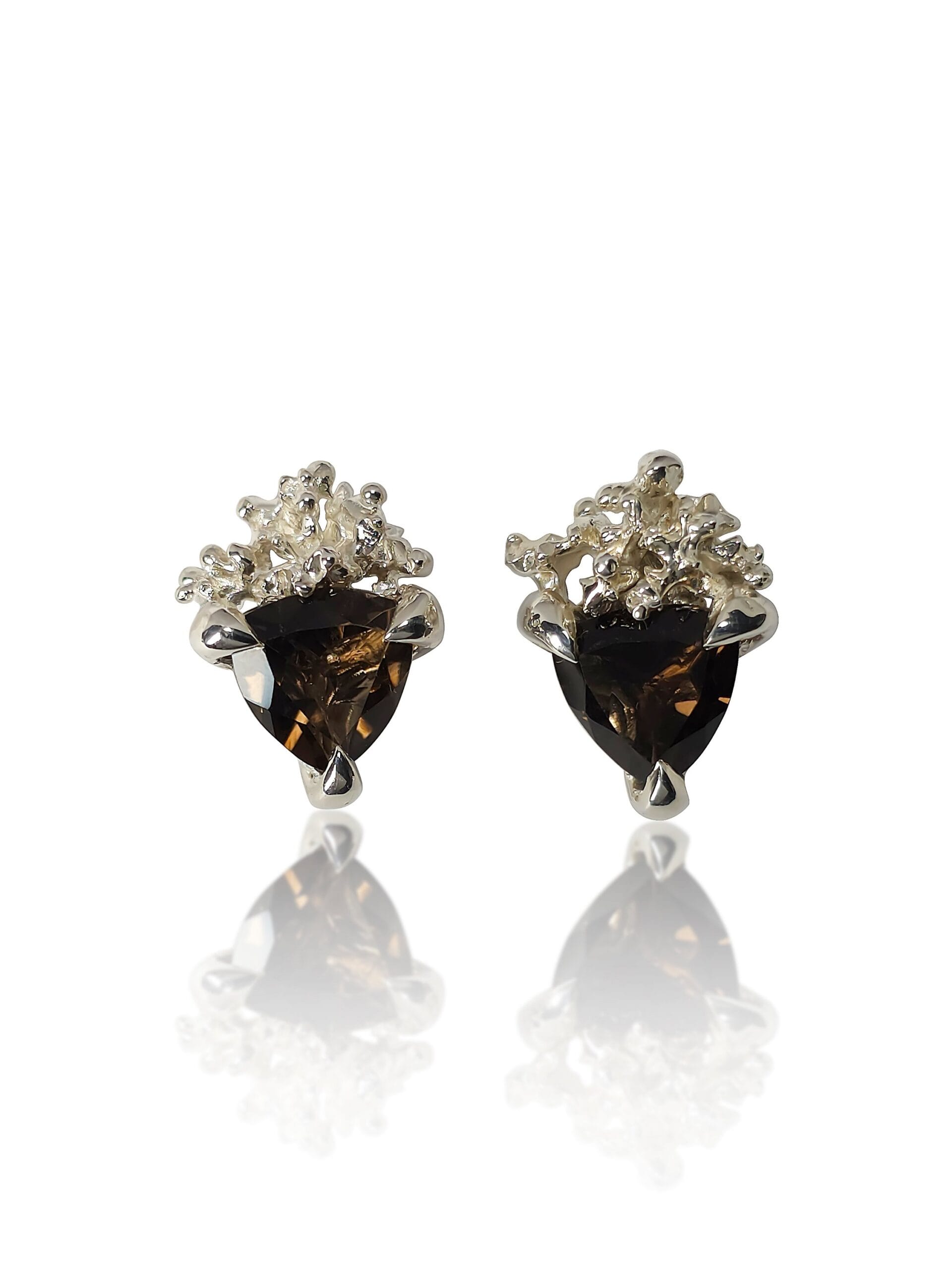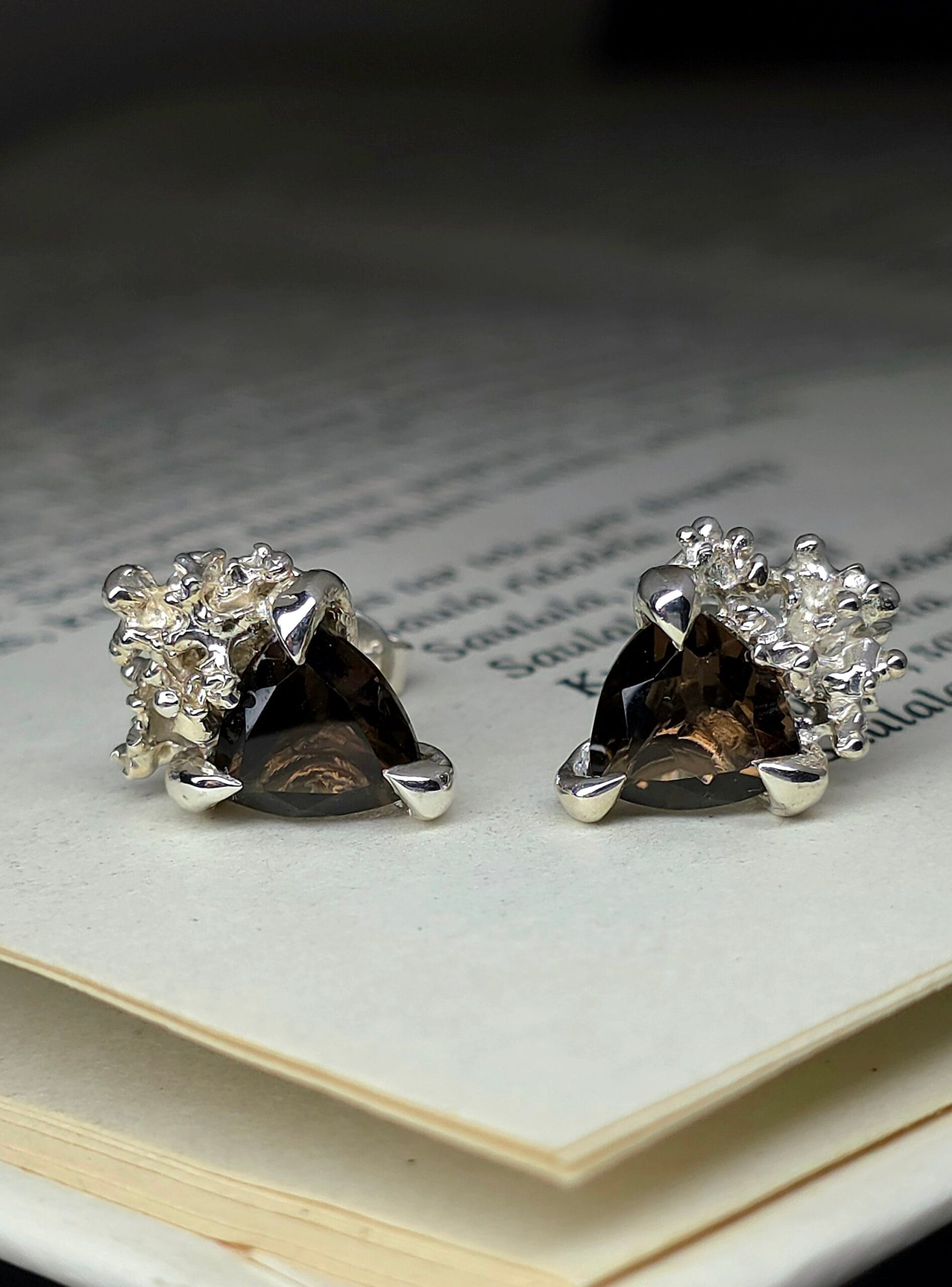 ⚜︎ Centre įtvirtinti natūralūs dūminio kvarco akmenys, pasižymintys gilia, žemiška spalva.