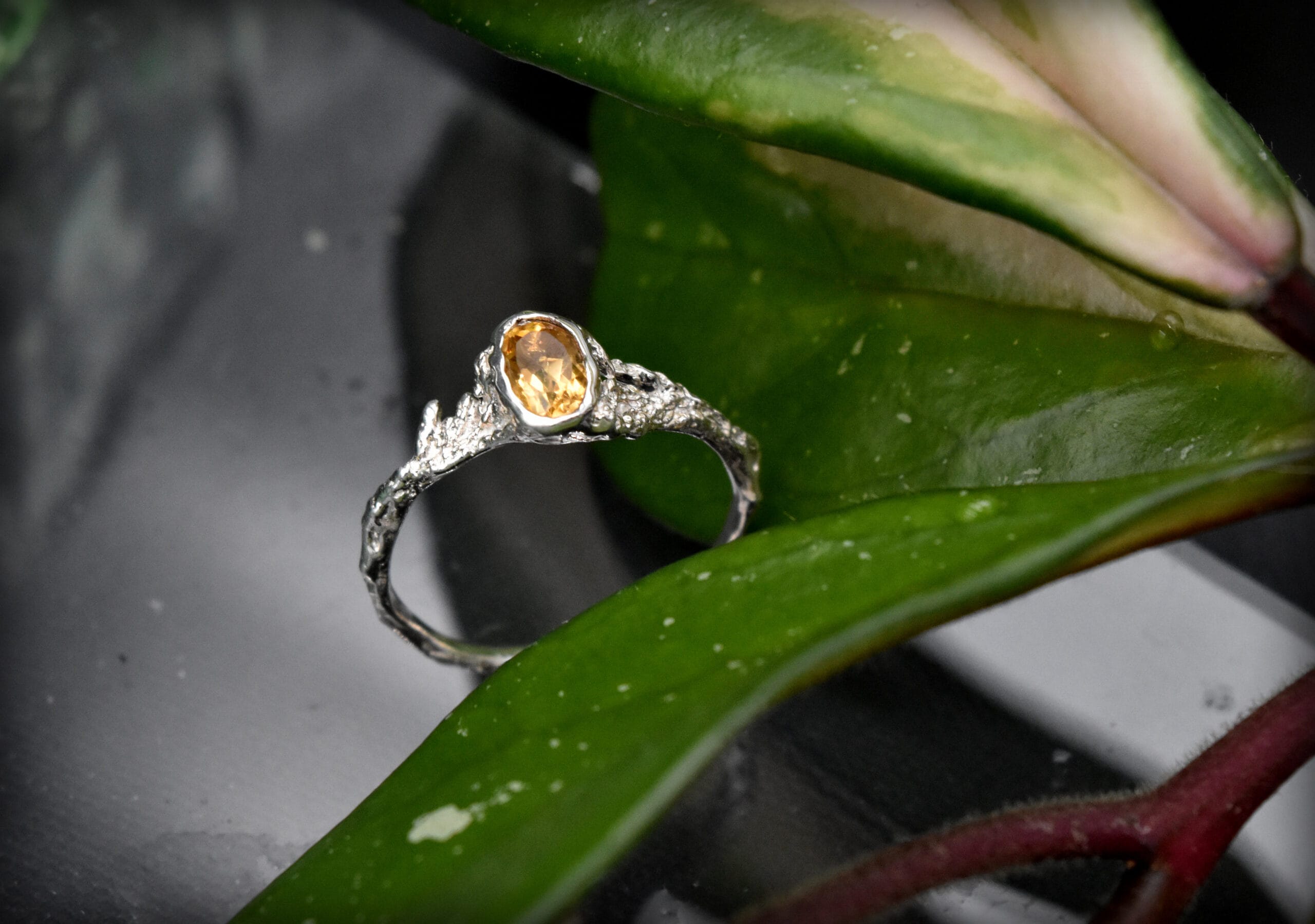 ⚜ Smulkus sidabro žiedas su natūraliu citrino akmeniu.⚜ Šio minimalistinio žiedo dizainas primena spygliuočio augalo šakelę.⚜ Dydis 17,5⚜ Prabuota Lietuvos prabavimo rūmuose.⚜ Papuošalas atkeliauja supakuotas dovanų dėžutėje.